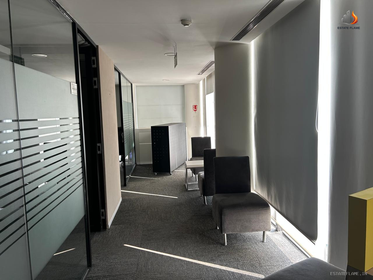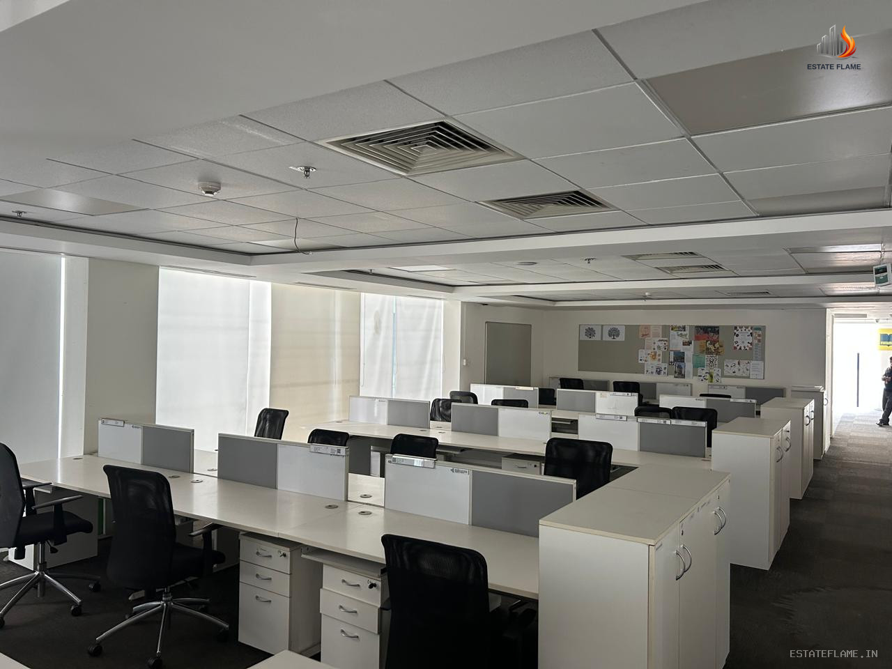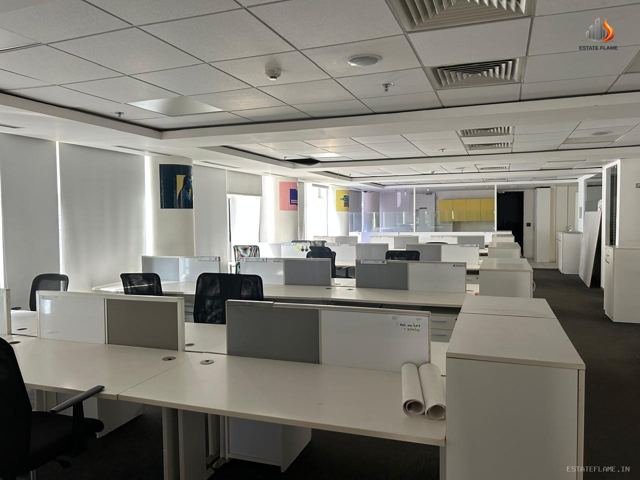 Film City, Sector-16A Noida: Fully furnished 15,000 sq. ft. office on the 3rd floor (South-East facing) of a G+6 building, offering 110 seats, 8 cabins & 2 conference rooms, with double basement parking, rent at Rs. 100/sq. ft. + Rs. 15/sq. ft. maintenance (parking Rs. 1000/unit).