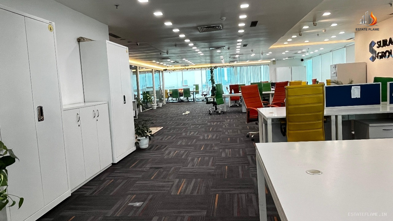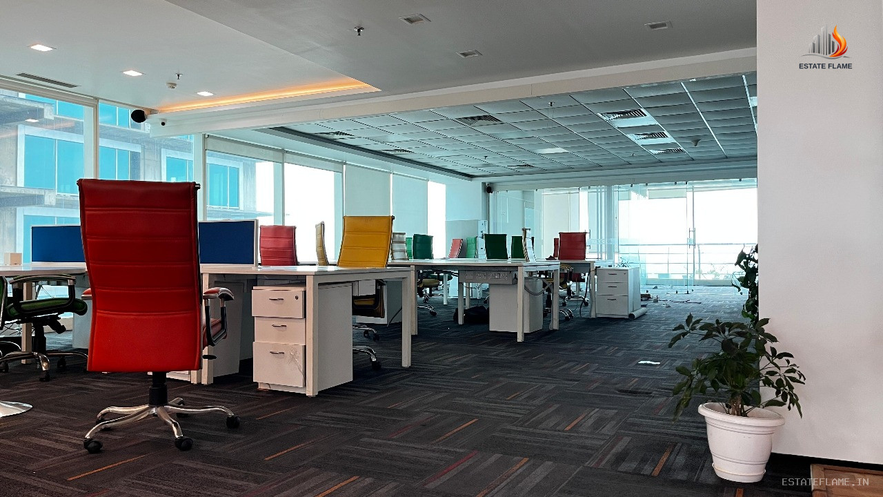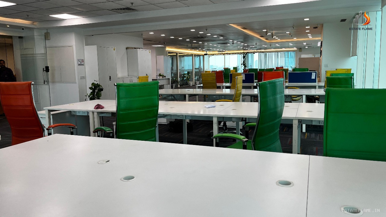 Premium fully furnished 6,532 sq. ft. office on the 3rd floor in Sector-16, Noida, offering 100 workstations, 6 cabins, 2 meeting rooms, 1 conference room, north-east facing layout, in a 34-floor corporate building, available at Rs. 120 per sq. ft